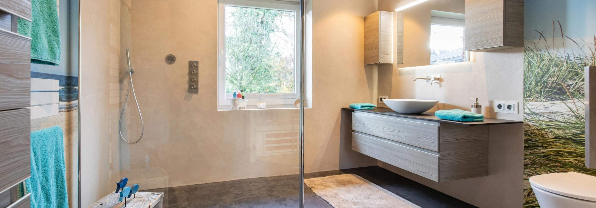 Fugenlos gestalten mit Mikrozement. Schön und edel gestaltet, ohne Unterbrechung – so wird Ihr Bad oder Ihre Küche zum Blickfang.